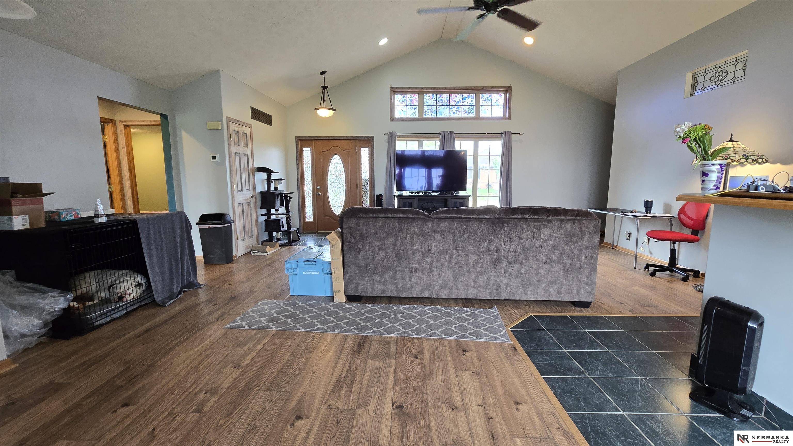 Come check out this great home that welcomes you with an open floor plan, located in Hallam, for small town living at its best. The main living area features beautiful newer wood flooring with vaulted ceilings in the kitchen, dining area, and living room. It has plenty of windows to allow in light for an open feel. The oversized laundry room/bathroom combo is conveniently located on the main level off the kitchen. Enjoy the peaceful backyard views with no neighbors behind, while sitting under your covered patio. Downstairs you will find a good sized family room, bedroom, bathroom, and a bonus room that can be used as an office or nonconforming bedroom. There is also plenty of storage areas.