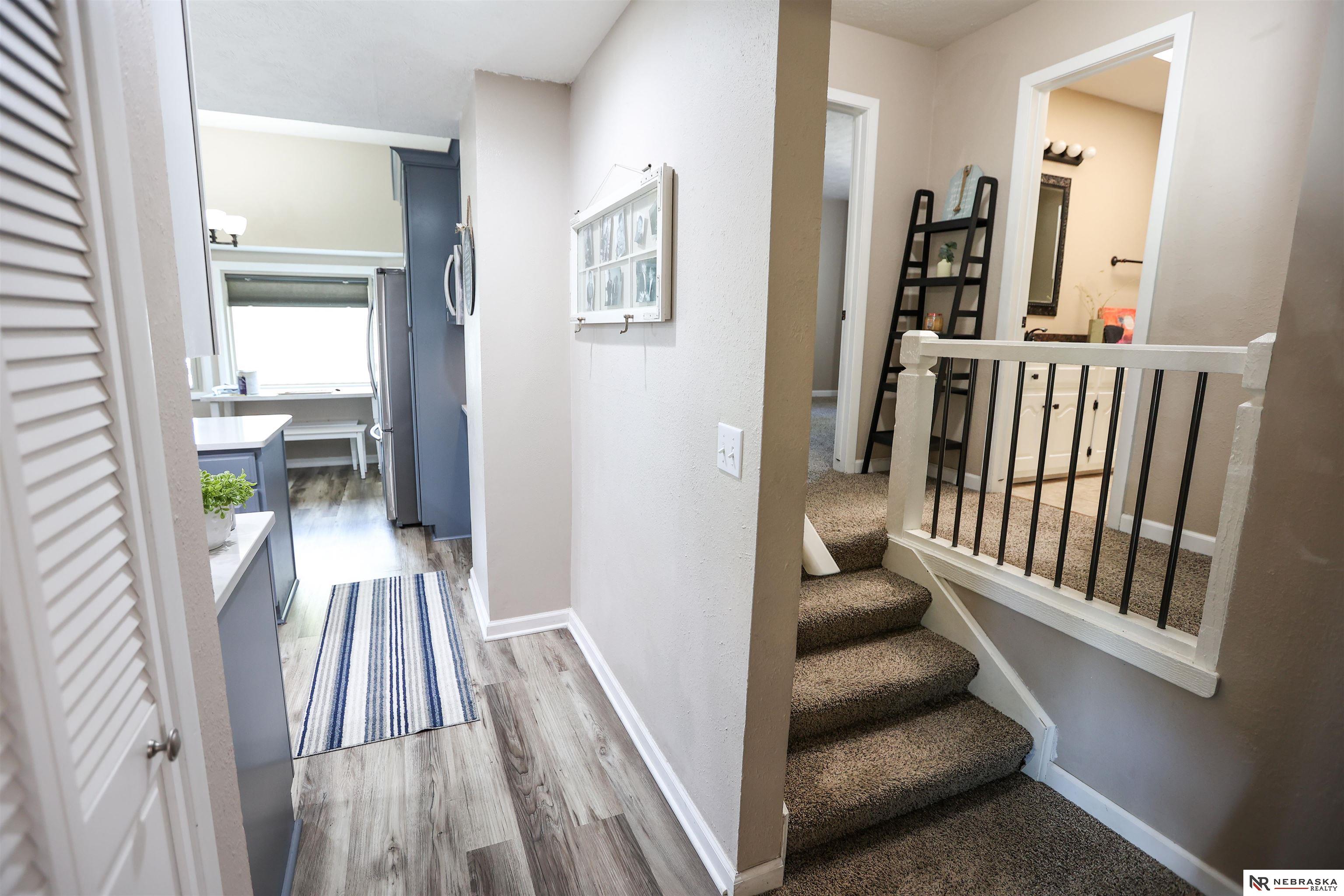 OPEN SUNDAY 1-3PM. Tucked away in coveted Fontenelle is this spacious one-of-a-kind home that backs to serene forest with regular deer and turkey visits! The huge wrap around backyard deck is perfect for soaking in nature! The home boasts over 3,200 sf and includes 2 spacious primary suites perfect for multi-generational living or hosting and primary laundry for convenience. Beautifully remodeled modern kitchen includes new soft close cabinets, gas stove, appliances and quartz counters. Updates include new roof, siding, driveway, plumbing, electrical, flooring and more. Huge family room with soaring ceilings perfect for entertaining, anchored by a cozy gas fireplace. Walking distance to Fontenelle Forest hiking trails. Oversized 2 car garage w/storage. Schedule your showing today!